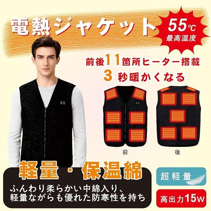 「11点全面加熱システム」前側6ヶ所・後側5ヶ所に配置された発熱ユニットが、体幹から効率的に温熱を届ける電気ヒーティングベスト。