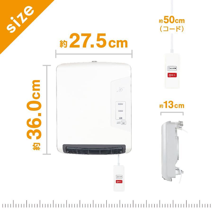 3営業日以内に発送≪新品未開封品≫:●人感センサー機能搭載●出力切替 (800W-500W-送風)●角度検知(傾斜スイッチ)で本体が傾いていると通電しない安全設計●3時間自動オフタイマーで切り忘れ防止に●寒い冬場も脱衣所を温めます●部屋との温度差を少なくします●場所をとらない壁掛けタイプで簡単に設置可能●背が低い人でも操作できるワイヤードリモコン●側面フィルター(フィルターお手入れランプ付)でお手入れ時期をお知らせ