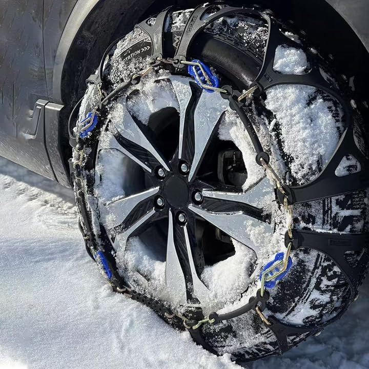 「クイックロック構造」YEZOND非金属タイヤチェーンは4ピースデザインを採用しており、タイヤチェーンをタイヤの下に通してロックを締めるだけで簡単にタイヤに装着できます。