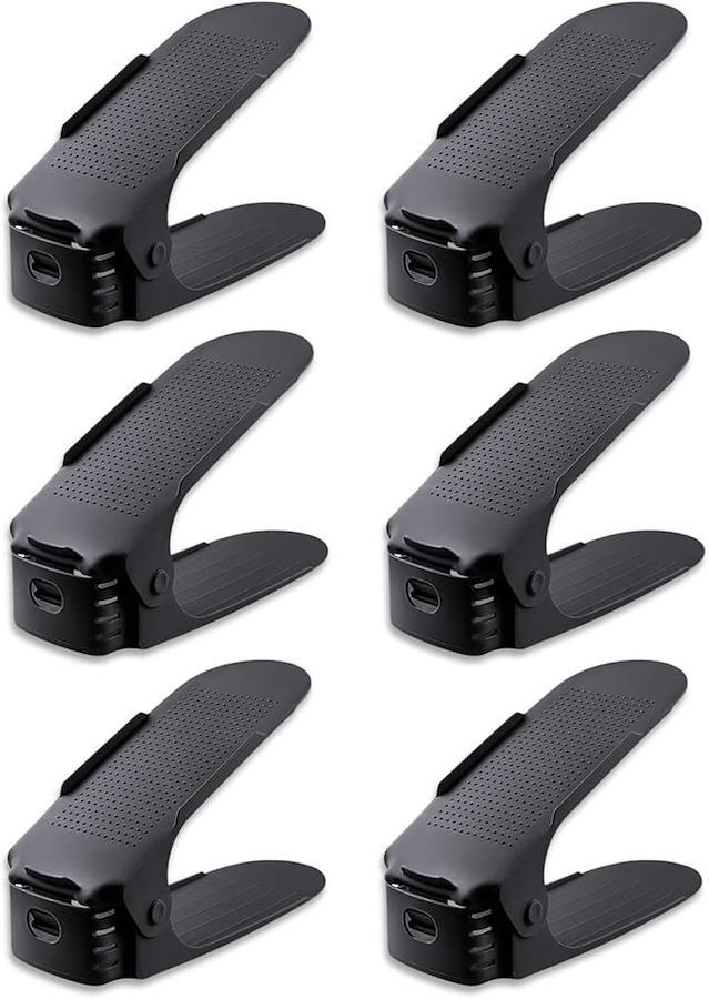 「商品詳細」シューズホルダーx6個セット サイズ:25.5x10.5x6cm(高さ調節約8~17cm) 素材:ポリプロピレン カラー:ホワイト / グレー / ブラック