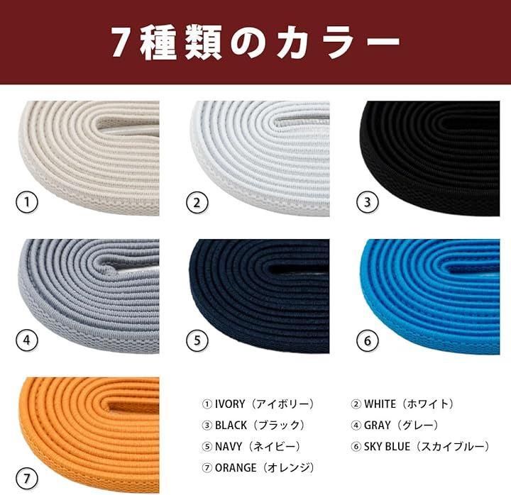 「商品詳細」 エラスティックシューレース 素材:コットンxゴム 長さ:80 / 100 / 120 / 140 / 160 / 180cm 幅:6mm / 7mm / 8mm カラー:全7色