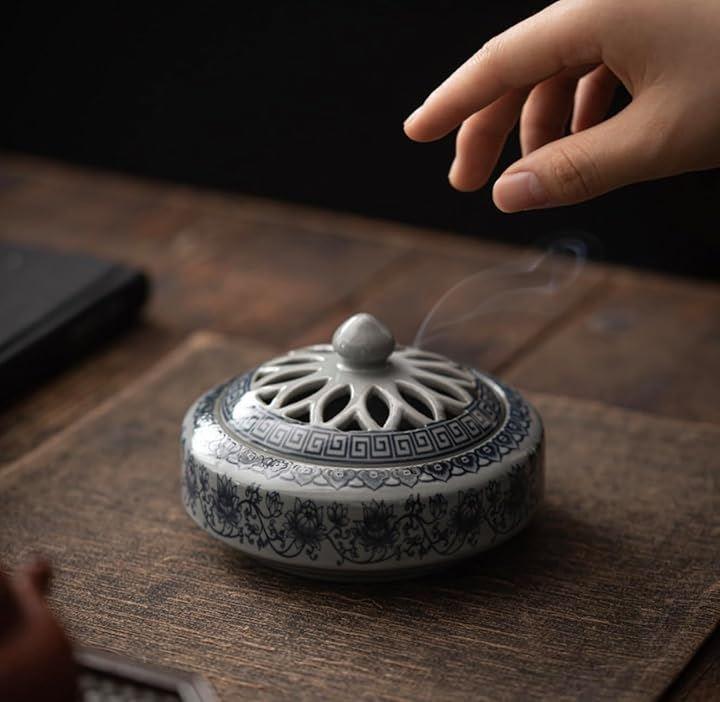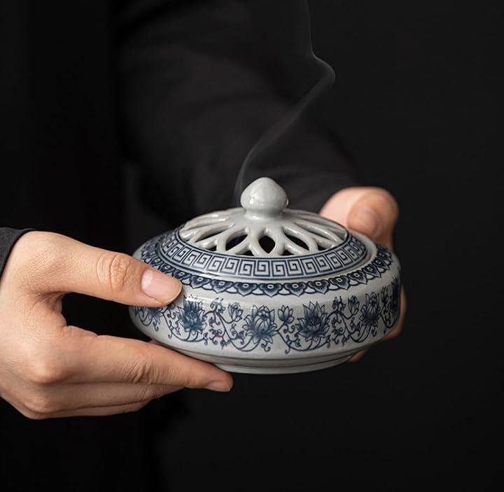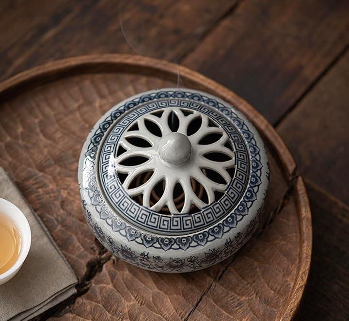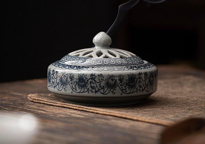 「伝統工芸の趣を宿す香炉」磁器の産地「徳化」で焼成された、古典的な青花文様が美しい蓮花香炉。