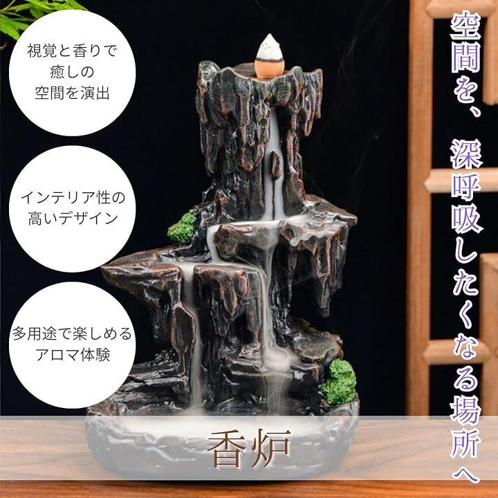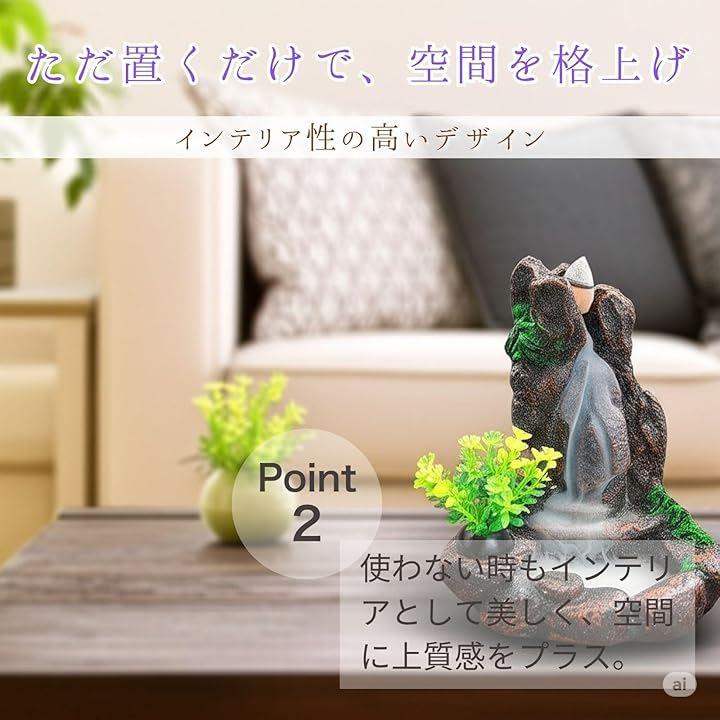 「視覚と香りで癒しの空間を演出」逆流する煙が滝のように流れ落ちる視覚効果で、心が落ち着く癒しのひとときに。