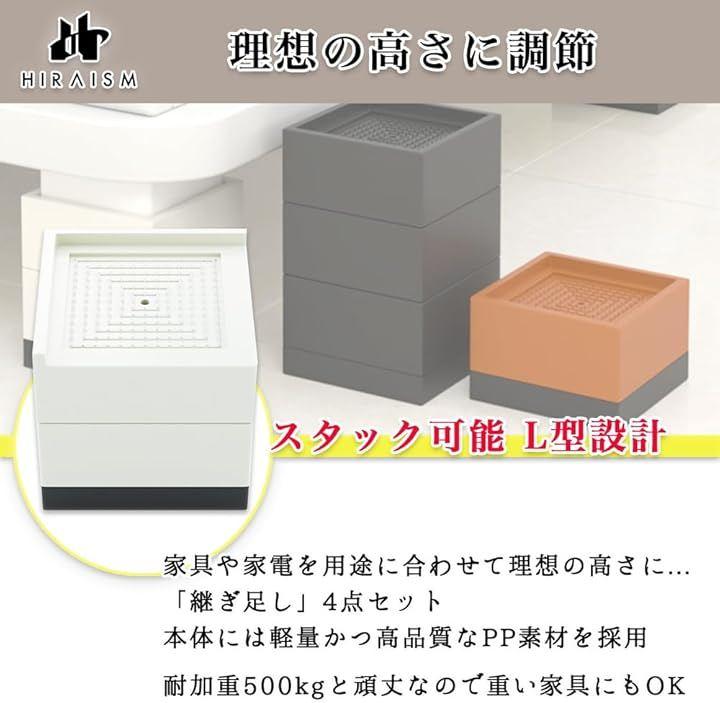 また、HIRAISMの継足は、脚があるものはもちろん、冷蔵庫や洗濯機等の足がない家電などにも対応できるこだわりのL枠設計です。