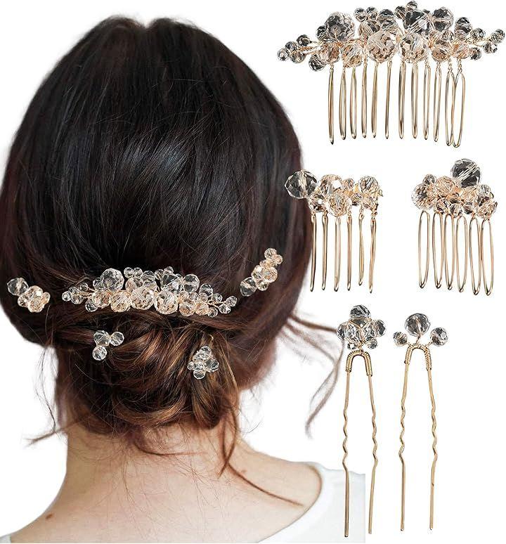 和装やドレスにぴったりの飾り付きコームとピンの5点セットです。
