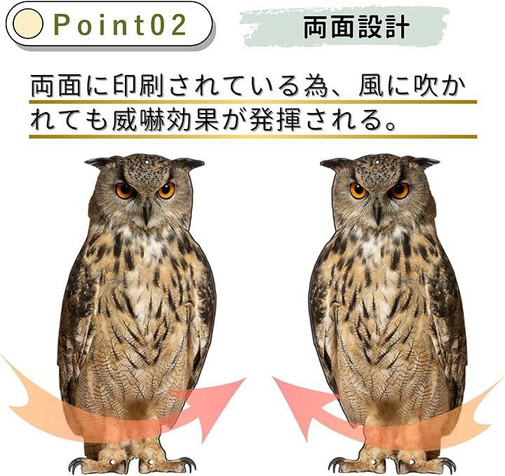 鳥たちの天敵である「ミミズク(フクロウ)」と「タカ」の姿を再現することで、自然な方法で鳥を遠ざけることができます。