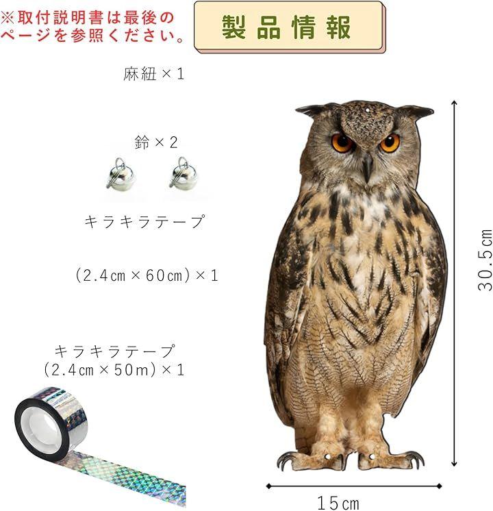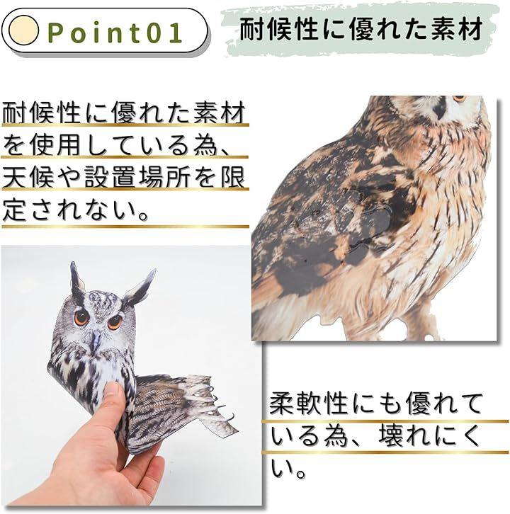 本物そっくりの見た目で、カラスやハト、スズメなどの害鳥を効果的に威嚇します。