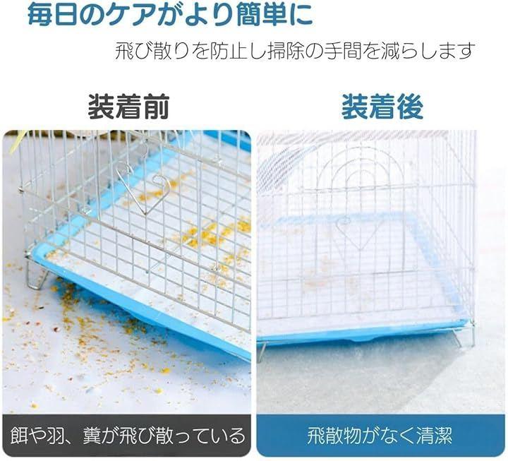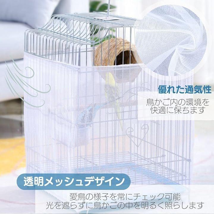 「鳥かごの中がクリアに」白色のメッシュ生地で作られたこのカバーは、鳥かごの内部を明るく保ちつつ、優れた通気性を提供します。