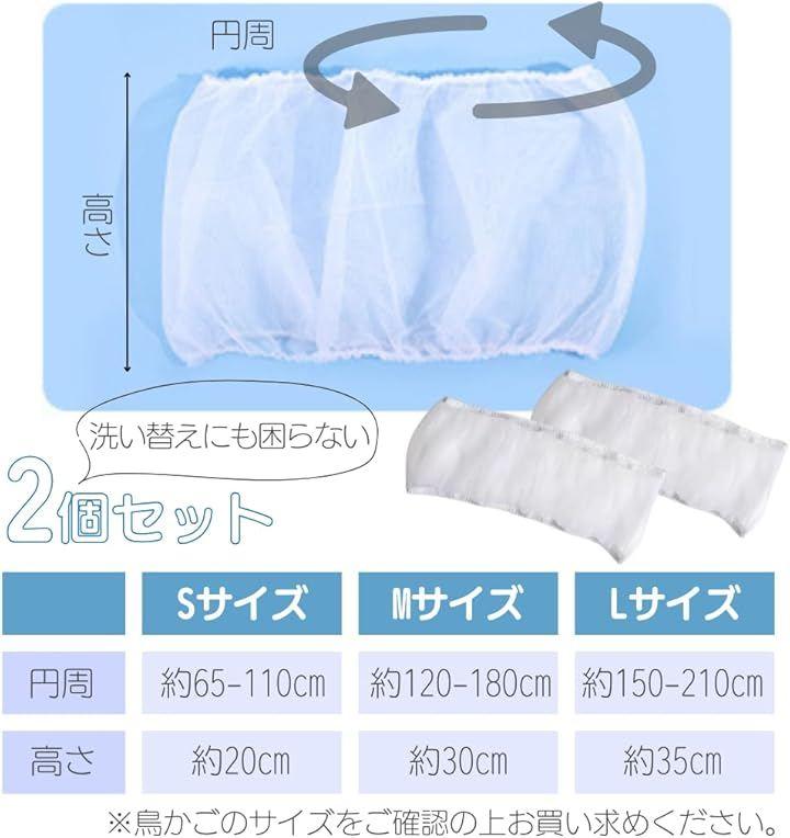 「セット内容」ケージカバー2個 「サイズ」(S)円周:約65-110cm 高さ:約20cm (M)円周:約120-180cm 高さ:約30cm (L)円周:約150-210cm 高さ:約35cm お手持ちの鳥かごのサイズをご確認の上お求めください。