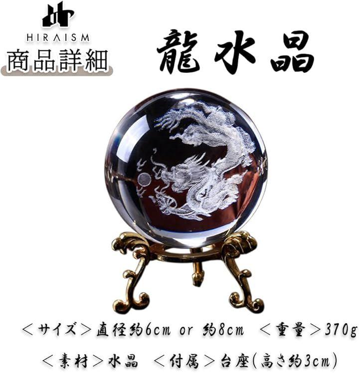 「商品内容」龍の玉 <サイズ>直径約6cm or 約8cm <重量>370g <素材>水晶 <付属>台座(高さ約3cm)