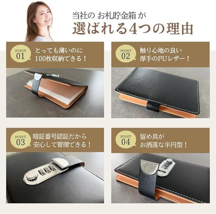 「100万円を目指せる達成感」最大100枚のお札を収納できる本製品は、目標額「100万円」の貯金が可能で、達成感を味わえる設計です。