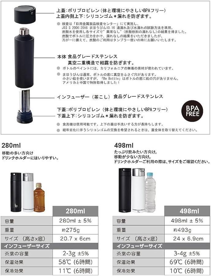 「セット内容」Be Bottlex1点 「容量(約)」280ml・498ml 「カラー」白色・黒色 *容量xカラーお好みの組み合わせをお選びください。