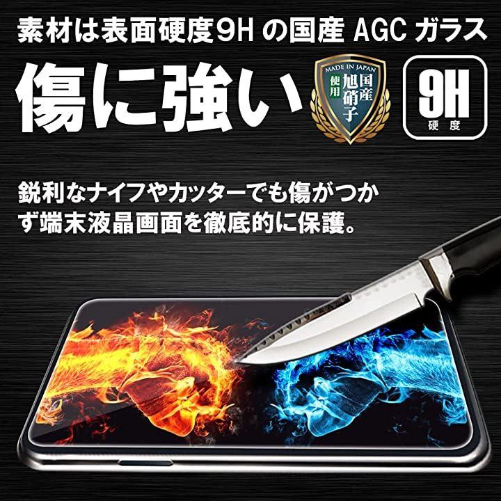「飛散防止」国産AGCガラス9H硬度、素材に日本製ガラスを使用、飛散防止加工を行っておりガラスが破損しても液晶までダメージを与えません。