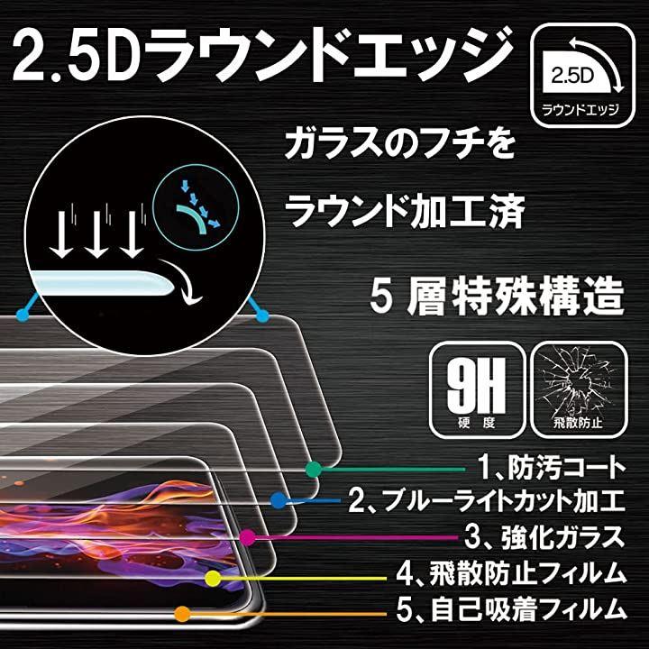 *内容品:ブルーライトカットガラスフィルムx2、カメラフィルムx2、ウェットクロスx2、ドライクロスx2、埃吸着シートx2、貼付説明書付属。
