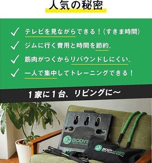 「1台で全身の筋肉を鍛えられる」スクワットや自宅で鍛えにくい背中まで、BODYBOSS 一台で全身鍛えられます。
