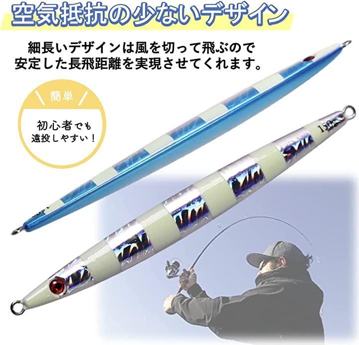 蓄光塗料が塗られているので水中や、暗闇で光を放ち早朝の釣りや夜釣りの際にも効果を発揮します。