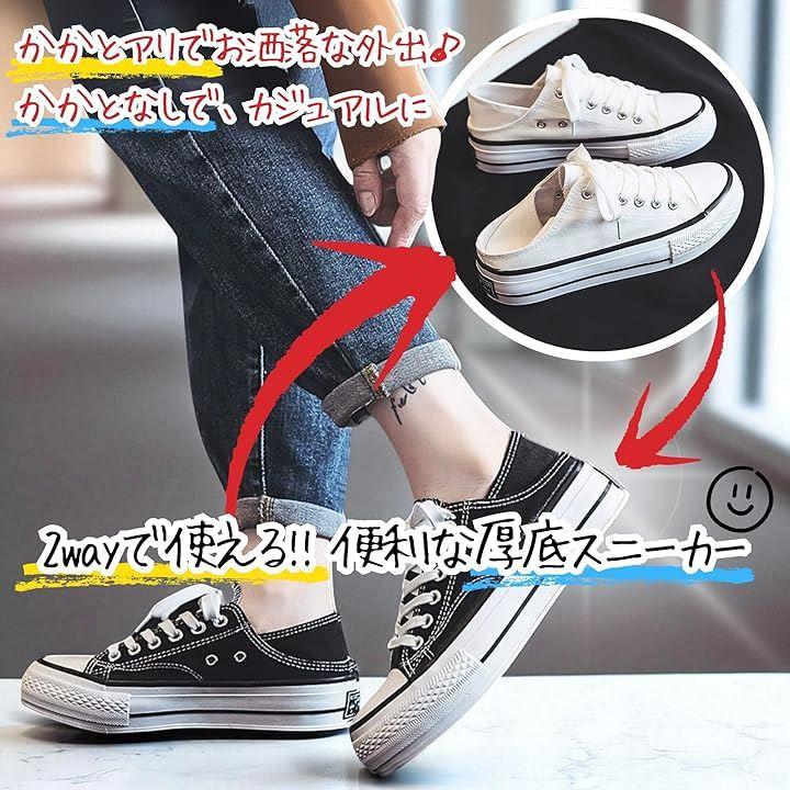 長時間歩いても疲れにくい厚底 3cmのキャンバススニーカー。