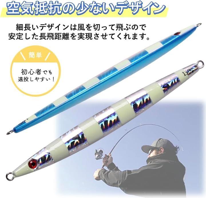 (2)「飛距離を生むロングキャスト設計」 空気抵抗を抑えたスリム形状で、風の強い日でも安定した弾道を維持。