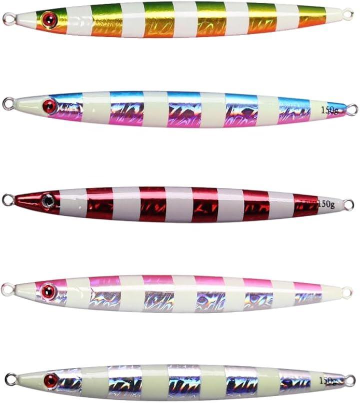 (8)「5色セットで状況対応」 クリアウォーター用のナチュラル系から、濁り潮・夜釣りに適した派手色まで、全5色を揃えた戦略的構成。