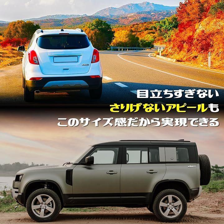 小さなサイズでも存在感は十分で、バンパー、ドア、トランクなど自由に貼ることが可能です。