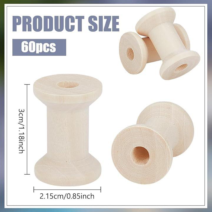 サイズ詳細:木製空スプール60個で、直径約21.5mm、長さ30mmです。