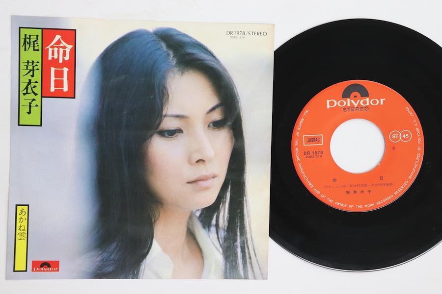 ・アーティスト梶芽衣子・タイトル命日 / アカネ雲・レーベル・型番POLYDOR DR1978・フォーマット7インチレコード・コンディション(盤)良い (VG+)・コンディション(ジャケット)可 (VG)・コンディション(帯)オビなし・特記事項【カバーに目立つ染み】