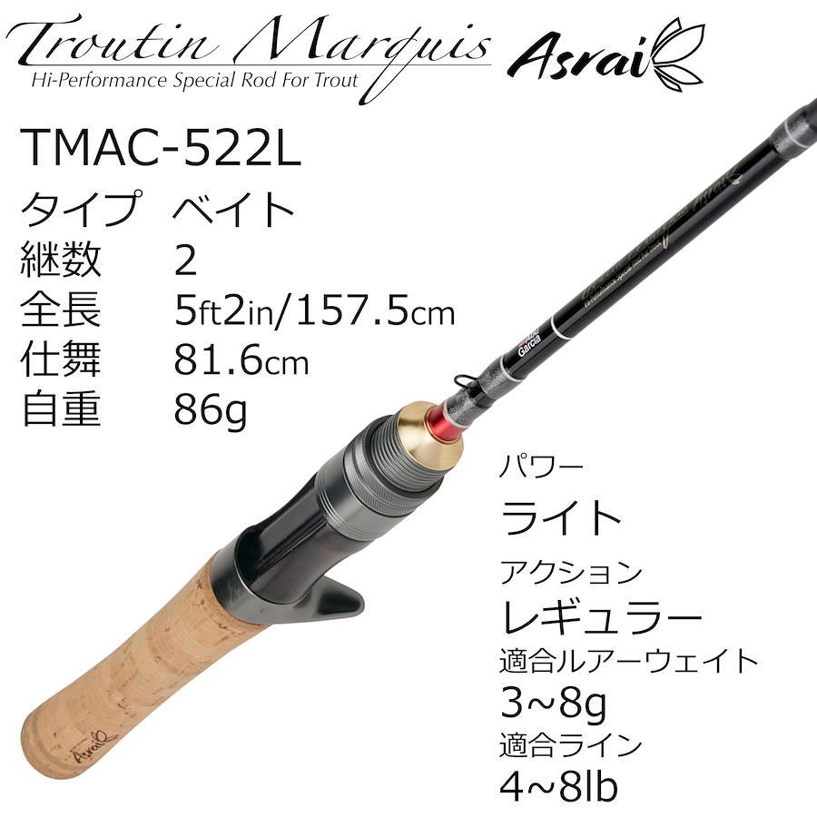 全長(ft/cm)5'2"/157.5●仕舞(cm)81.6●標準自重(g)86●先径(mm)1.2●ルアー(g)3-8●ライン(lb)4-8●パワーL●テーパー/アクションレギュラー●製法チューブラー●使用材料カーボン95%,グラス5%