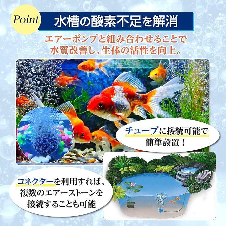エアーストーンを使用することで、水槽内に細かい泡を発生させ、飼育環境を快適に保ちます。
