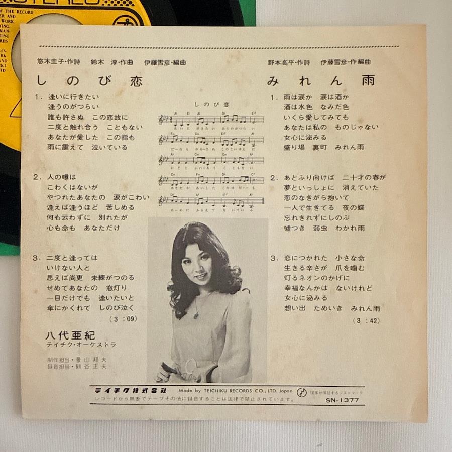 Aki Yashiro Showa Era Vintage EP Record Shinobi Koi Miren Ame 7-inch Extended Play