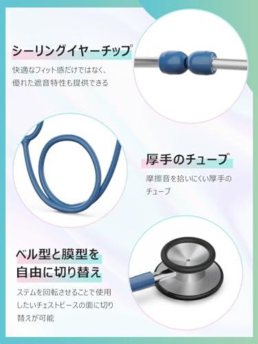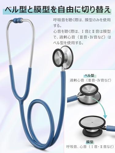 【成人・小児両面型】よりも高音の聴取に優れ、幅広い聴取に適しています。 【耐久性と使い勝手の向上】高品質なステンレス鋼製を採用しており、通常のアルミニウム合金よりも音の伝達が優れるだけではなく、優れた耐久性も備えています。頻繁に使用されでも構わません。 【肌を冷やさない設計】 チェストピースのダイアフラム膜が冷やさない特性を持つため、不快を感じさせることなく、より信頼性の高いです。 【豊かな付属品】サイズの異なるイヤーチップが3セット付属されています。1セットはあらかじめ本体に装着されており、2セットが同梱されています。 【安心保証】当店でご購入の製品は12ヶ月間の保証サービスをご提供しております。お客様が製品を購入された時点から12ヶ月後の応当日まで保証いたします。