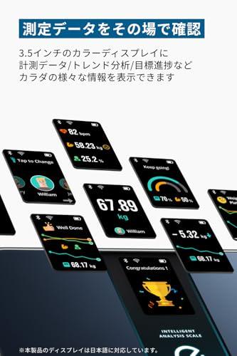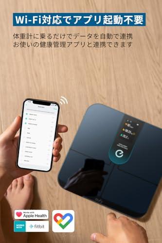 様々な測定データをその場で確認: 3.5インチのカラーディスプレイを搭載。アプリを開かなくても、様々な項目の計測値をデバイス上で確認できます。 16の項目でカラダ全体を測定: 体重やBMI、体脂肪率などの基本情報のみでなく、心拍数、筋肉量、骨量、体年齢、皮下脂肪率などのカラダに関する16の項目を測定できます。 Wi-Fi / Bluetooth接続に対応:Wi-FiまたはBluetoothを使用して専用アプリに接続することで、データを自動的にアップロード。登録人数の制限なくご使用いただけます。 各種アプリへのデータ連携: 専用アプリ内のデータは、AppleのヘルスケアやGoogle Fit、Fitbitと連携することができるため、体型管理に役立つデータをまとめて管理できます。 パッケージ内容:Eufy Smart Scale P3、単4形アルカリ乾電池x4、取扱説明書、最大24ヶ月保証。 ※快適にご使用いただくために、アプリとファームウェアの更新をこまめに行なってください