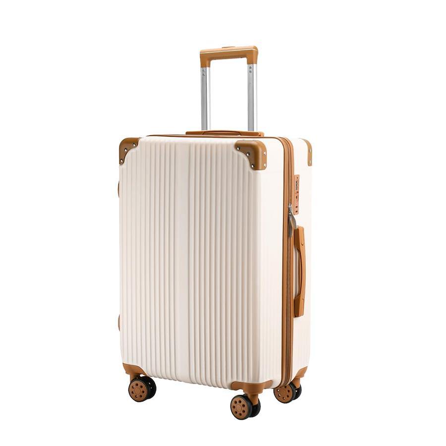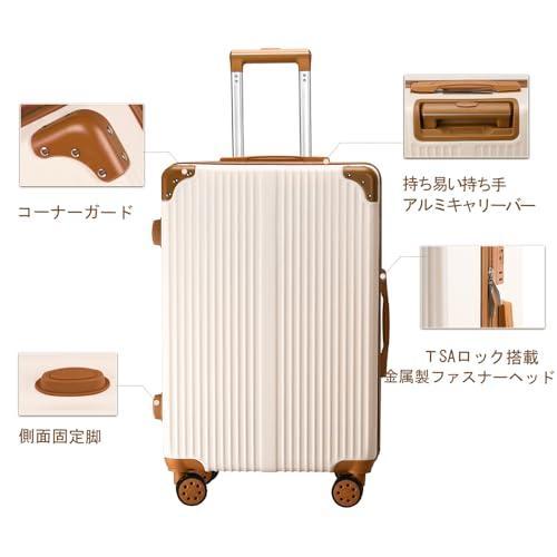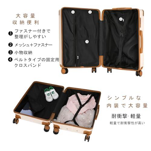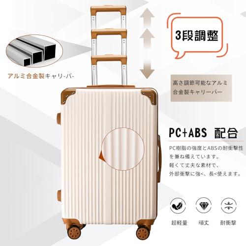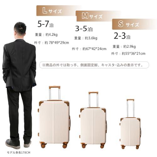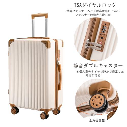 【表面素材】スーツケースはABS樹脂とPCでの混合素材で作られ、耐衝撃性に優れています。エンボス加工、傷つきにくい。縦縞デザインにより、シンプルかつファッションです。超軽量で、女性でも楽々に持ち出かける人気なキャリーケースです。 【TSAロック】ファスナータイプではなく、旅行箱は世界基準施設TSAロックを搭載するので、施錠したままで預けることができて、トラベルに安心できます。本体の鍵穴はTSA職員の検査用ですので、お客様には付属の鍵はございません。 【三段調節キャリバー】超軽量のアルミニウム製キャリバー、高さ三段階調節、ご自分の身長に合わせてスムーズに調整が可能です。耐振性に優れるデザインで荷物を引きかける時、しっかりしています。 【耐衝撃静音ダブルキャスター】高弾性TPE衝撃軽減素材のキャスターを採用し、より静かで耐摩耗性も向上しています。スムーズな滑りを実現しながら、360度の自由回転もできます。ダブルキャスターデザイン、旅先での移動をよりリラックスで快適になります。角部に硬質コーナープロテクトを追加、衝撃を効率的に吸収でき、より長くご利用いただけます 【必ずお読みください】 ■輸入商品のため輸送の際に多少の小キズや汚れがある場合がございます。 ■お客様のモニター環境(光度など)により、実際のカラーと差異が生じる場合がございます。 ■当店は品質向上のために常に改良しております。そのため一部部品が説明画像と異なる場合もございます。 予めご了承ください。 ■生産ロットにより色に若干の誤差は出ます 【小型・Sサイズ・寸法】 機内持ち込み可能Sサイズの内寸は50*34.5*22.5cm、外寸は55*36*21cm;重さ:2.5kg 超軽容量、は38リットル、1~3泊のご旅行に。 機内持ち込み可能サイズは航空会社により異なりますので、事前に航空会社に確認下さい。 ■※サイズ・重量は生産ロット等により、若干の誤差がございます。 【驚くほど軽量、頑丈なボディ】PC(ポリカーボネート)+ABS樹脂の混合素材を使用したスーツケースは、耐久性と軽量性を両立しています。エンボス加工された表面は傷が目立ちにくく、スタイリッシュで長持ちします。Sサイズは機内持ち込み対応で、三辺で115cm以内、重量約2.9kgの超軽量設計。女性やお子様でも簡単に扱え、国内旅行、海外旅行、出張に最適です。 【こだわりの機能】 ?360度回転&静音キャスター:8輪ダブルキャスターは360度回転可能で、耐久性と静音性を両立。凸凹道や駅構内でもスムーズに移動ができ、ストレスフリーな使い心地を提供します。重い荷物を運ぶ際にも安定感抜群で、快適な旅行をサポートします。 ?調整可能なハンドル: 3段階調整可能な軽量アルミ製キャリーバーを採用しており、身長や状況に合わせて快適に使用できます。人間工学に基づいたハンドルは握りやすく、長時間使用しても疲れにくい設計です。 ?おしゃれなデザイン:カラフルでかわいいデザインが女性に人気。旅行の雰囲気も盛り上がります。 【大容量収納で整理しやすい設計】1~2泊の短期旅行から長期旅行まで、荷物を十分収納できる大容量設計。X型固定ベルトで荷物をしっかり固定し、メッシュポケットで小物をスムーズに整理できます。収納力抜群で、ファミリー旅行や荷物が多い方にも安心です。収納力抜群、初心者の方から旅慣れた方まで幅広くご利用頂けるスーツケースです。 【世界基準の安全性】海外旅行には欠かせないTSAダイヤル式のロックが搭載されており、外出がより安全になります。3桁の暗証番号を簡単に設定でき、鍵をなくす心配も不要。 ※※鍵部分の鍵穴は航空会社検査専用のため本製品には鍵は付属しておりません。 " 【安心の日本ブランド&1年間保証】当店の商品はすべて日本で企画・デザインをして、中国の自社工場で生産しています。高品質にこだわり、アフターサービスにもしっかり対応しています。通常使用で1年以内に不具合が発生した場合、無料で対応させていただきます。万が一、初期不良があった場合は迅速に新品交換させていただきます。