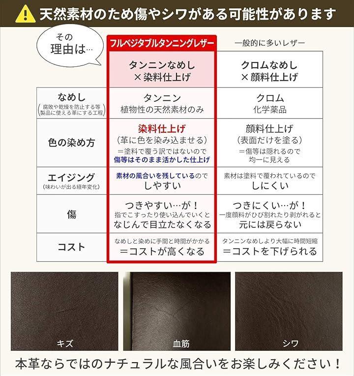 化学薬品を一切使わないフルベジタブルタンニンレザー(ヌメ革)を採用しています。
