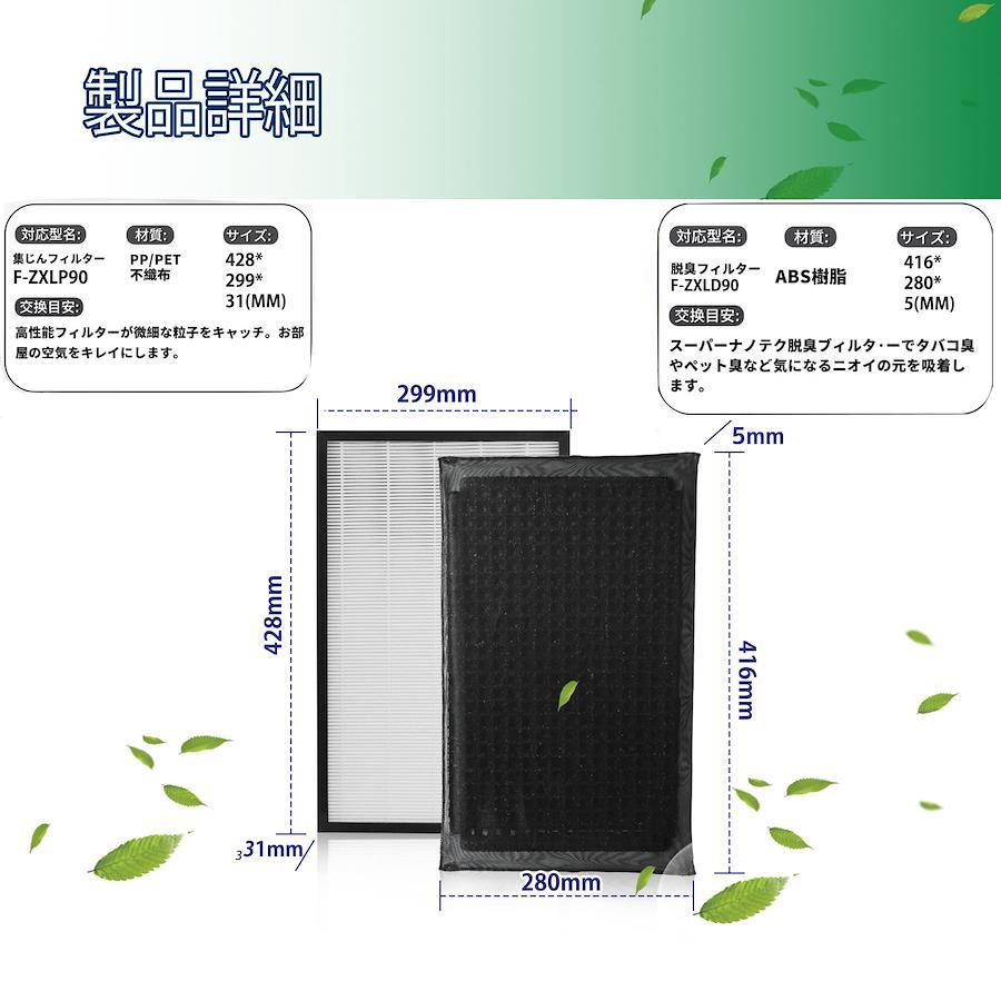 梱包内容:空気清浄機交換用集じんフィルターF-ZXLP90(1枚)脱臭フィルターF-ZXLD90(1枚)互換品