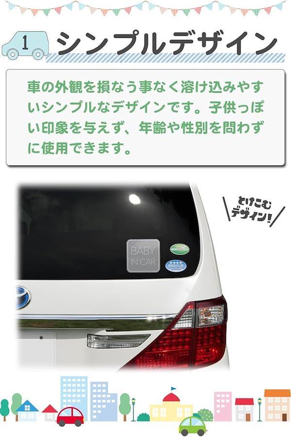 後続車へ赤ちゃんが乗車している事を知らせ、安全第一で運転している事を知らせます。