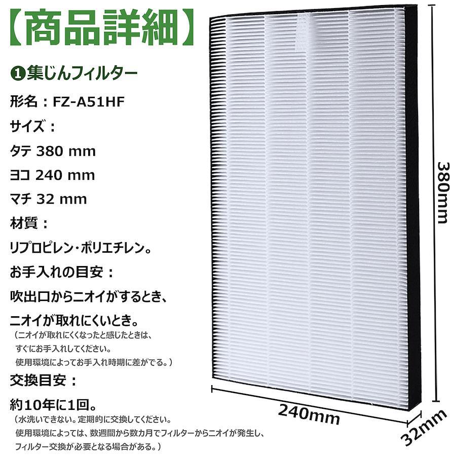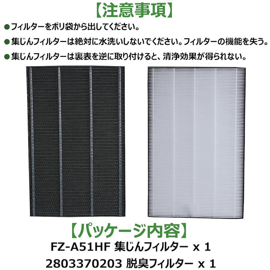 3営業日以内に発送≪新品未開封品≫:【対応機種】 FU-A51-W FU-B51-W FU-D51-W FU-E51-W FU-F51-W FU-G51-W【形名】集塵フィルター FZ-A51HF / 洗える脱臭フィルター 2803370203 。材質:リプロピレン・ポリエチレン・活性炭。【機能】集じんフィルターは花粉、アレル物質(ダニのふん・死がい)、カビ菌、ホコリ、チリ、タバコの煙(粒子)、ペットの毛などを捕集する。脱臭フィルターは吸着スピードが早い良質な吸着素材活性炭を採用し、トイレのニオイ、生ゴミのニオイ、ペットのニオイとタバコの煙などの生活臭を効果的に除去する。【お手入れの目安】吹出口からニオイがするとき、ニオイが取れにくいとき。(ニオイが取れにくくなったと感じたときは、すぐにお手入れしてください。使用環境によってお手入れ時期に差がでる。)【交換の目安】1年に1度の目安で交換することをオススメ。定期的にお手入れしていただければ、長持ちできるが、臭いがどうしても取れなかったら、限界が来たので、新品と交換してください。(使用環境によっては、数週間から数カ月でフィルターからニオイが発生し、フィルター交換が必要