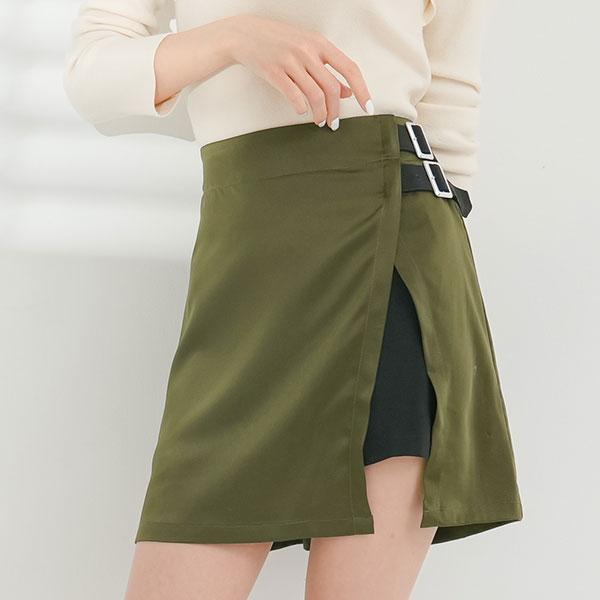 【デザイン】ダブルベルトデザインのレイヤード風スカートです。ミニスカートの上にラップ風デザインを重ねています。サイドスリットから脚をチラ見えできて、色っぽい印象に。後ろウエストがゴムなので着脱も簡単です。スタイリングしやすいワンカラーとコーデの主役になる配色デザインをご用意。