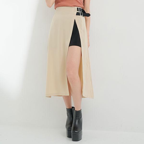 【デザイン】ダブルベルトデザインのレイヤード風スカートです。ミニスカートの上にラップ風デザインを重ねています。サイドスリットから脚をチラ見えできて、色っぽい印象に。後ろウエストがゴムなので着脱も簡単です。スタイリングしやすいワンカラーとコーデの主役になる配色デザインをご用意。