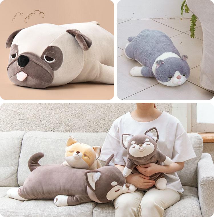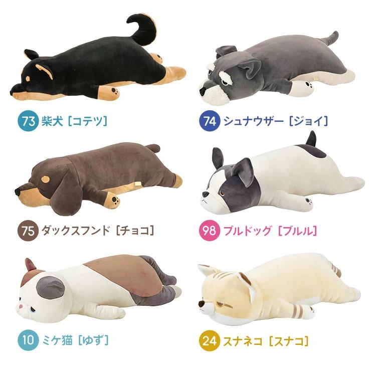 ■サイズ【犬】ゴールデン[ソラ] :長さ56×幅26×高さ14cmプードル[ショコラ] :長さ50×幅24×高さ12cmパグ[はな] :長さ52×幅23×高さ14cmビーグル[ビッキー] :長さ53×幅23×高さ14cmチワワ[ココア] :長さ54×幅27×高さ14cm柴犬[コタロウ] :長さ54×幅21×高さ14cm柴犬[コテツ] :長さ54×幅21×高さ14cmシュナウザー[ジョイ] :長さ49×幅22×高さ12cmブルドッグ[ブルル]: 長さ53×幅25×高さ13.5cmダックスフンド[チョコ]:長さ50×幅23×高さ13cm【猫】ミケ猫[ゆず]: 長さ49×幅21×高さ14cmスナネコ[スナコ] :長さ54×幅27×高さ14cmシャム猫[レオ]: 長さ54×幅25×高さ13cmトラ猫[ムギ]: 長さ54×幅25×高さ13cmスコティッシュ[まる]: 長さ50×幅23×高さ13cm【その他】シロクマ[ラッキー]: 長さ53×幅23×高さ16cmうさぎ[つむぎ]: 長さ50×幅20×高さ13cmたぬき[ぽんきち] :長さ55×幅22×高さ16cmカワウソ[くるり] :長さ54×幅23×高さ16cmオラウータン[ウータン] :長さ54×幅25×高さ13cmトラ[ラム・テン] :長さ56×幅23×高さ12cmゴリラ[ボンゴ]:長さ50×幅32×高さ15cmパンダ[リンリン]: 長さ53×幅23×高さ14cmうし[モーリー] :長さ55×幅23×高さ15cm