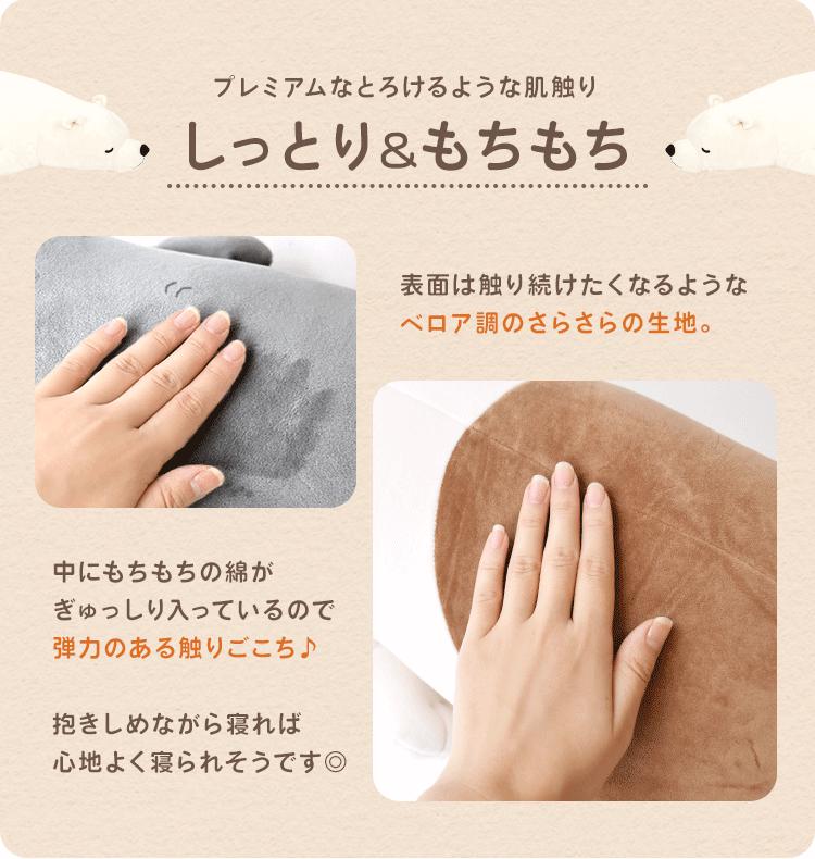 【抱きまくら M】しっとり&もちもちのプレミアムな柔らかさととろけるような触り心地が大人気のプレミアムねむねむアニマルズシリーズ。抱きやすく、飾るにもちょうどいいmサイズ。◎くたっと力の抜けたシルエットと表情を見ているだけで日々の疲れを緩和してくれそうです♪ご自分にはもちろん、ご家族やお友達へのプレゼントにもオススメです。