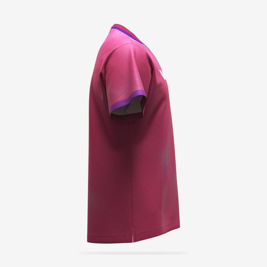 伸縮性に優れ、吸収した水分を素早く生地表面に拡散させる高機能素材「サラマックス」を採用した日本製ゲームウエア。汗によるベタつきや動きにくさを軽減し、快適な着心地をもたらすのが特徴です。刃文を想起させる躍動感あるデザインが、力強い佇まいを演出します。男女兼用とレディースの2タイプのシャツ、パンツとスカートの展開など、より幅広い好みに応えるラインアップ。また、シャツとパンツ/スカートは、同仕様の生地を採用しており、セットアップでの着用時にさらなる一体感を実現します。