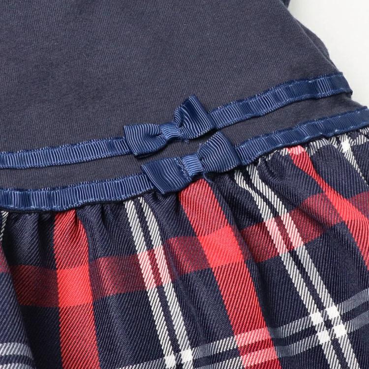 オケージョン、プチフォーマルにも普段にも使えるチェックスカートのドッキングデザインの半袖ワンピース。ウエストのリボンがポイント。(ベビーサイズのみ肩ボタン仕様になります。) 【アイテム】トップス シンプル ガーリー フェミニン カジュアル お洒落 オシャレ かわいい 可愛い 普段着 デイリーウェア お出かけ着 お外着 お外遊び着 子ども こども 女児 女の子 ガールズ キッズ ベビーサイズ トドラーサイズ 幼稚園 保育園 小学校 通園 通学 小学生 2025年春夏物新作 丸高衣料 半袖 プチフォーマル 入園式 入学式 卒園式 りぼん 結婚式 七五三 オケージョン ハレの日 ブラック 黒色 ネイビー 紺色 クレセント りぼん