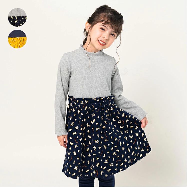 テレコ生地のハイネックTシャツに、花柄のコーデュロイスカートが切り替えになった長袖ワンピース。異なる2つの素材がドッキングされた、華やかな一枚です。テレコ生地は伸縮性、ストレッチ性があって伸びの良い素材なので、首元も良く伸び、お着替えも楽ちんでストレスフリーな着心地です!秋コーデにぴったりな、レトロな雰囲気の花柄がキュート♪ウエスト部分には、リボンがアクセントとして付いています!同じ花柄を使ったロンパース(M62703)、ロンT(M62803)があるので、姉妹やお友達とペア、リンクコーデ、お揃い、おそろいコーディネートも楽しめます!※ロンパースは同じ花柄ですが、生地は異なります。【アイテム】長袖 ロングスリーブ ワンピ シンプル ガーリー フェミニン カジュアル お洒落 オシャレ かわいい 可愛い 普段着 デイリーウェア お出かけ着 お外着 お外遊び着 子ども こども 女児 女の子 ガールズ キッズ ベビーサイズ トドラーサイズ 幼稚園 保育園 小学校 通園 通学 小学生 2024年秋冬物新作 丸高衣料 グレー 灰色 黄色 キイロ イエロー コン ネイビー 紺色 姉妹 お揃い オソロ おそろい お揃いリンク リンクコーデ ペア シミラールック ムージョンジョン