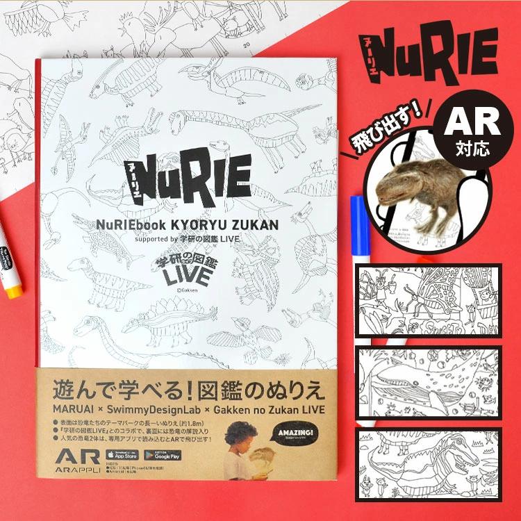 【NuRIE book】家族と、友達と、恋人と会話をしながら楽しめる新しいぬりえ、nurie(ヌーリエ)シリーズ。ブック型のヌーリエは広げるとながーいぬりえですが、折りたたんで収納できるのでコンパクト!収納にも困りません◎持ち運びも楽々♪普通の絵本とは違いARアプリに対応しており、スマホをかざすと恐竜や動物たちが飛び出します!