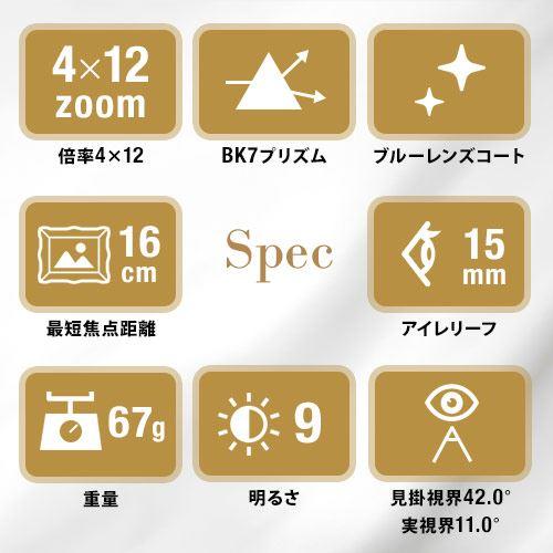 「明るい」高級輸入ガラスとブルーレンズコーティングにより、明るくはっきりとした映像を得られます。