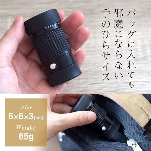 手のひらにすっぽり収まる手のひらサイズで重さも僅か65gなので、ポケットやバッグに入れても邪魔になりません。