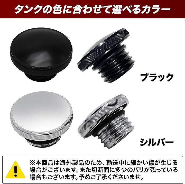 無駄のないスタイリッシュなデザイン:タンクキャップは、ブラックとシルバーのカラーバリエーションで、ハーレーなどのバイクに洗練された外観を与えます。