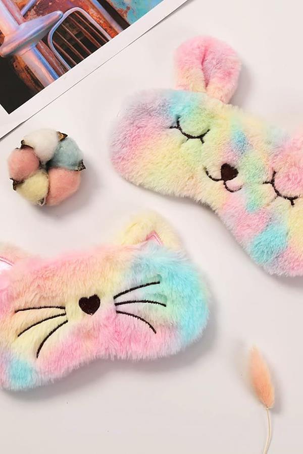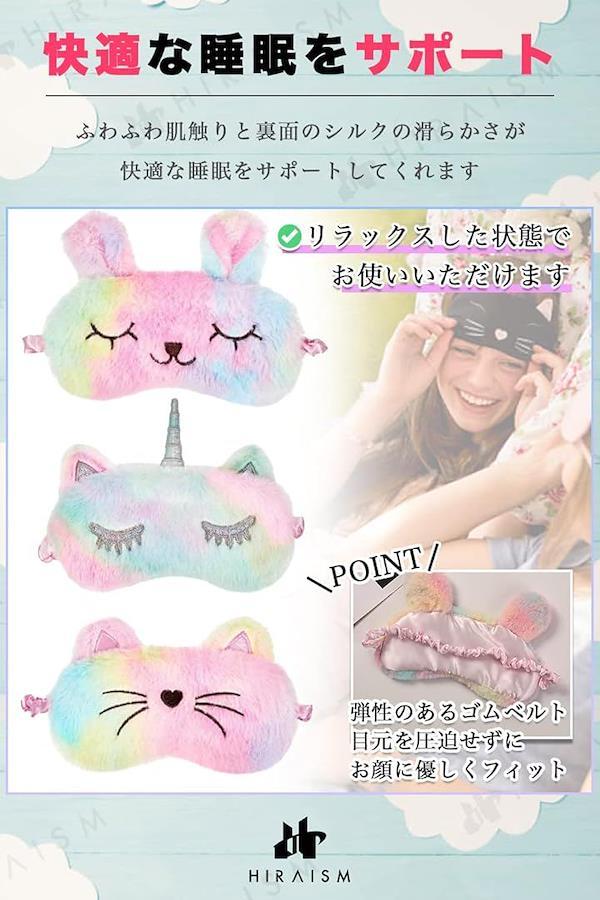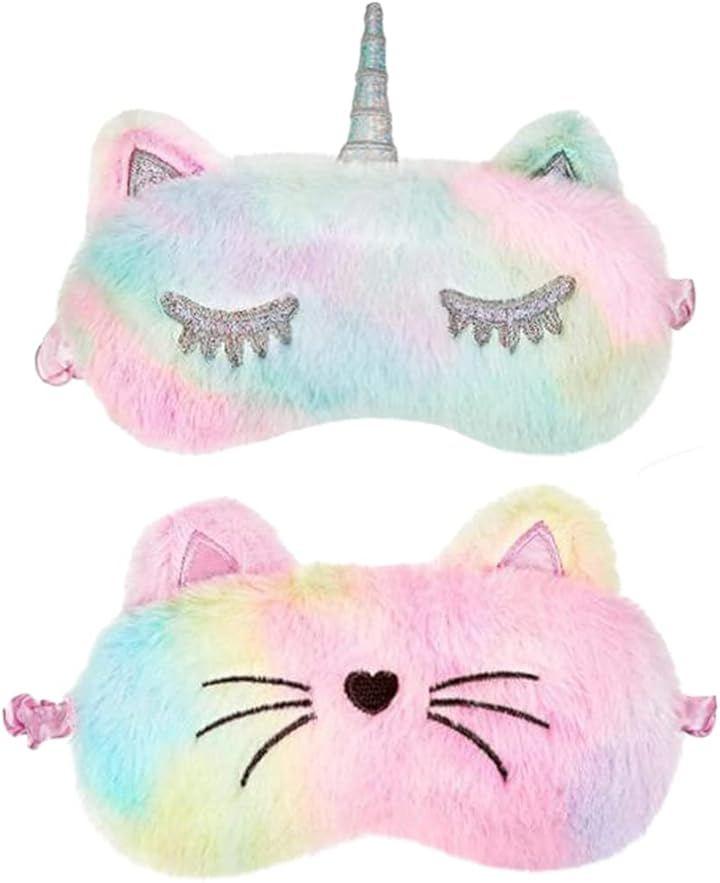 「かわいいデザイン」もふもふでカラフルなネコとユニコーンの子供用アイマスク2個セットです。
