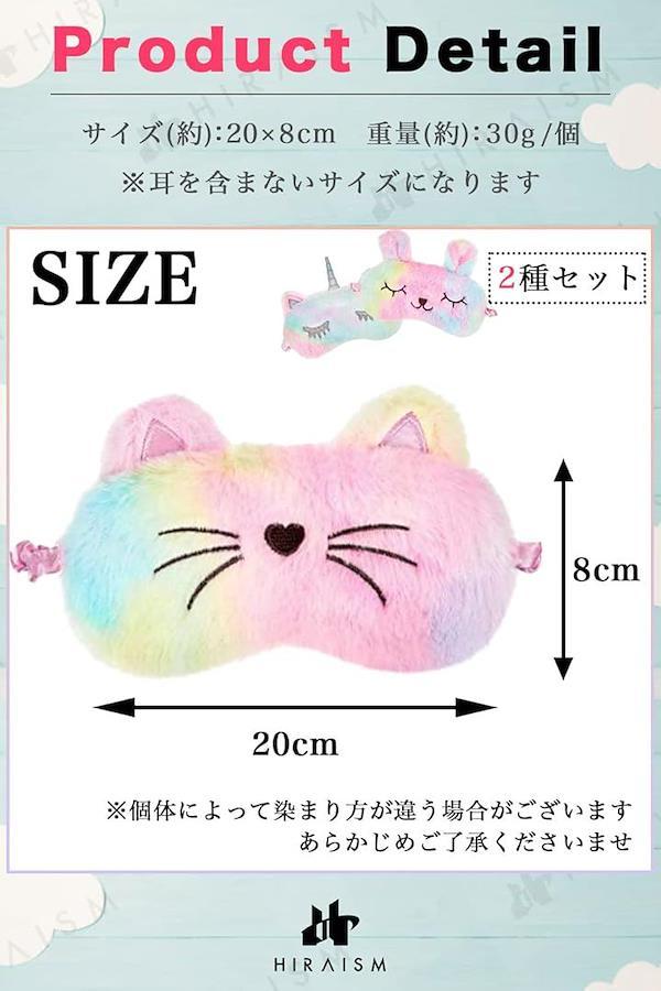 「商品内容」アイマスク2種セット(ネコ,ユニコーン) サイズ(約):20x8cm(耳を含まないサイズになります) 重量(約):30g / 個 *生産時期や仕入れ状況により一部仕様変更がある場合がございます。