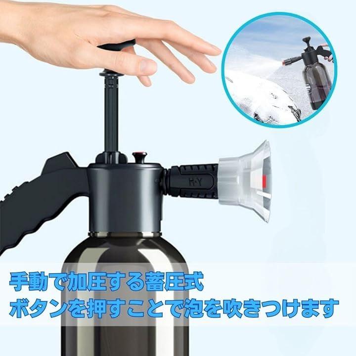 「高圧x手動で本格泡洗車。」ボタンを押すだけでモコモコの泡をしっかり噴射。自宅で手軽に本格泡洗車ができる、手動加圧式フォームガンです。